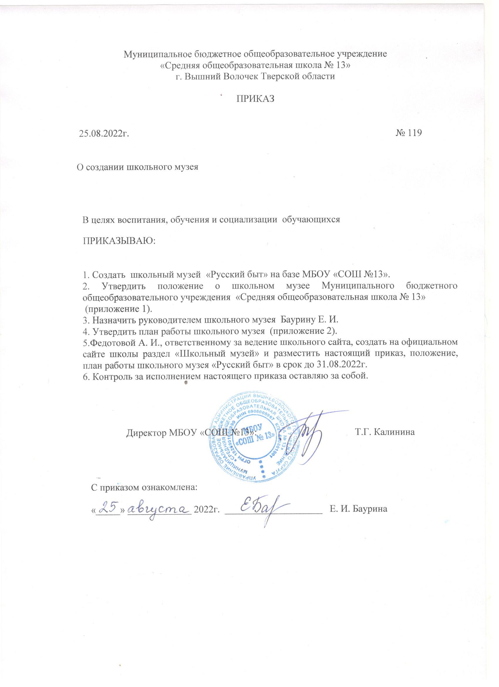 Приказ о создании музея
